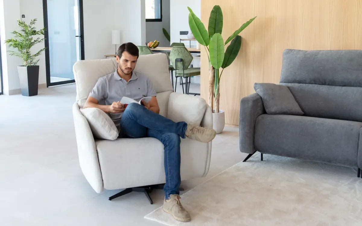 Its backrest and headrest are divided into two cushioned pieces with a very soft firmness, allowing them to adapt to the shape of each person's body, thus becoming a very comfortable armchair. In addition, the backrest can be reclined to achieve a practically lying posture.