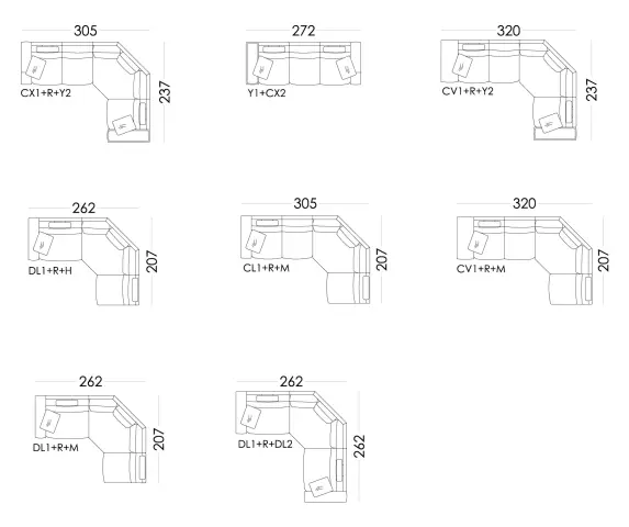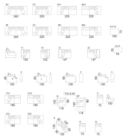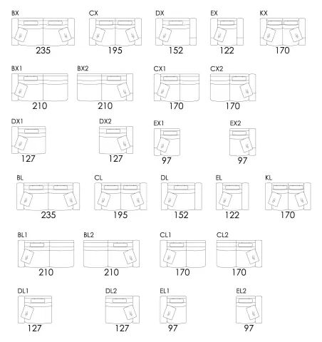 Calessi are două module cu braț montat, precum și patru tipuri diferite de braț. Oferă o altă noutate importantă: posibilitatea de a adăuga opțiunea unui sistem de încărcare prin portul USB de pe braț (disponibil pe brațele „S” și „X”). Cu marea sa varietate de module, se adaptează la măsurătorile oricărei locuințe. Noua sa tetieră din fibre îmbunătățește considerabil confortul, la fel ca și noua sa construcție a scaunului, oferindu-vă un scaun neted, fără șifonare.
