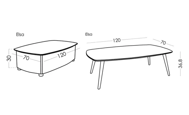 Elsa est une table rectangulaire, avec une légère courbe qui proportionne une touche spéciale.