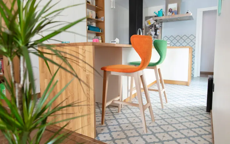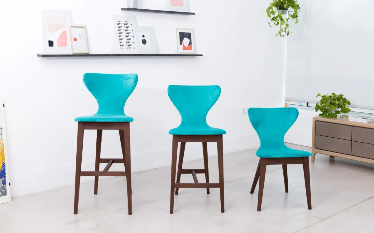 Nous présentons une nouvelle typologie de mobilier que nos clients nous ont demandé avec insistance ces dernières années: des tabourets qui sont destinés pour les cuisines ouvertes qui donnent sur le salon dans de nombreuses maisons. Les modèles Helga, avec pieds en bois, Marlon, Denzel et Burt, avec pieds en métal, sont disponibles en trois hauteurs, 45 cm (version chaise), 65 et 75 cm (version tabouret). Ils se distinguent tous par leur ergonomie et leur grand confort.