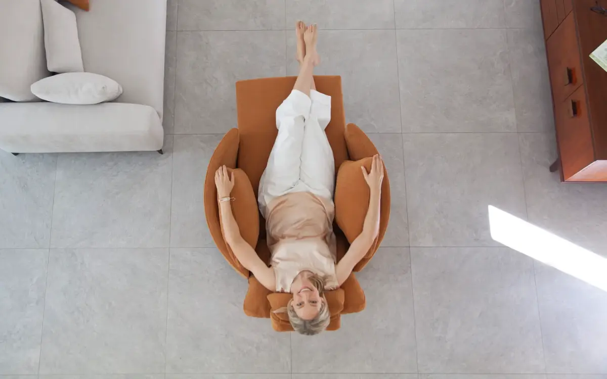 Este sillón relax con balancín ha sido rediseñado con una nueva cabecerilla con forma de cojín, que recoge mejor la cabeza y favorece una postura más ergonómica. Además, cuenta con un reposapiés continuo, ideal para estirar las piernas y disfrutar de una experiencia de descanso más completa y personalizada.