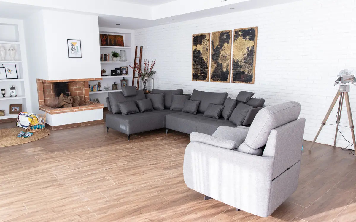 Es un modelo que permite diferentes combinaciones de telas, tanto en los respaldos como jugando con los diferentes cojines de decoración.