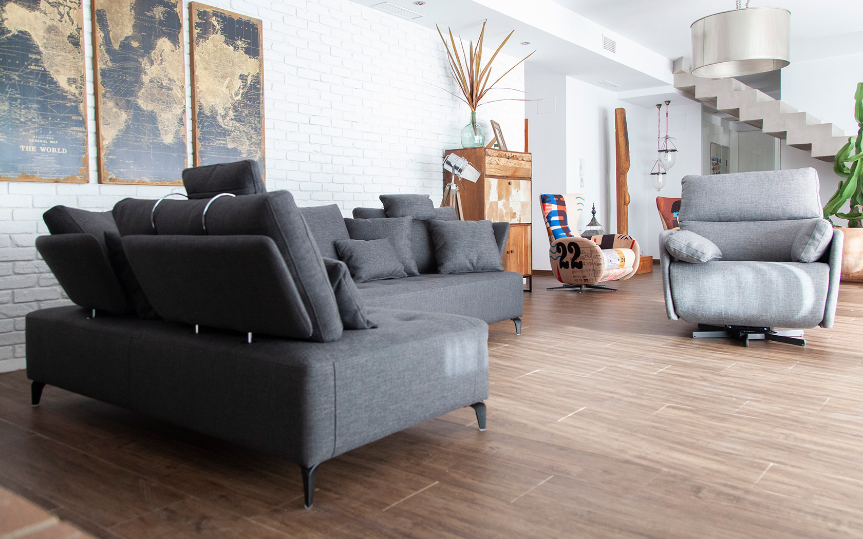 È un modello che permette diverse combinazioni di tessuti, sia sugli schienali che giocando con i diversi cuscini decorativi.