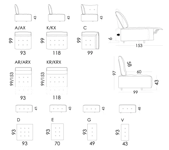 Its seat and backheight, along with the slightly flexible backrest (soft-back) provide it with an incredible comfort. If you also try the motorised reclining modules, comfort will have no limits. Special mention for the double motorised relax module, KR; we are sure that it can be the perfect addition to your home, as it is a compact You&Me, perfect for sharing your moments of relax in couple.