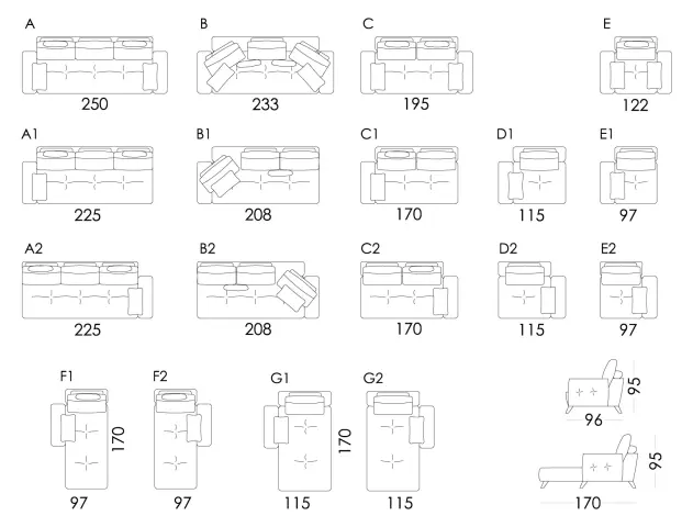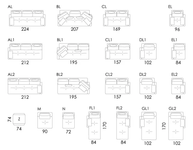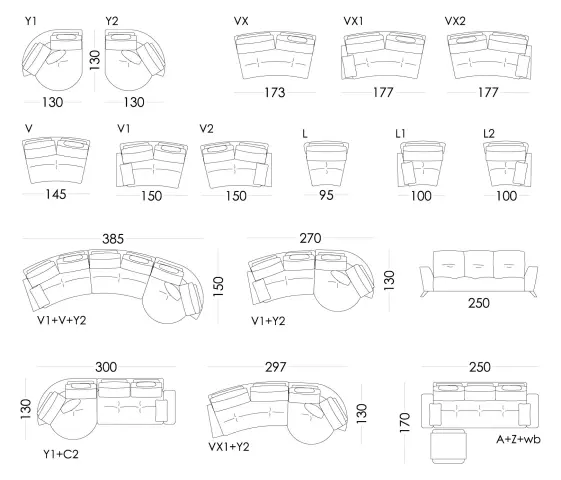 C'è un'ampia varietà di opzioni: divani, puff per creare chaise longue, e moduli sia dritti che curvi, che ti permetteranno di creare le composizioni più originali, sempre adattate alle misure della tua casa.